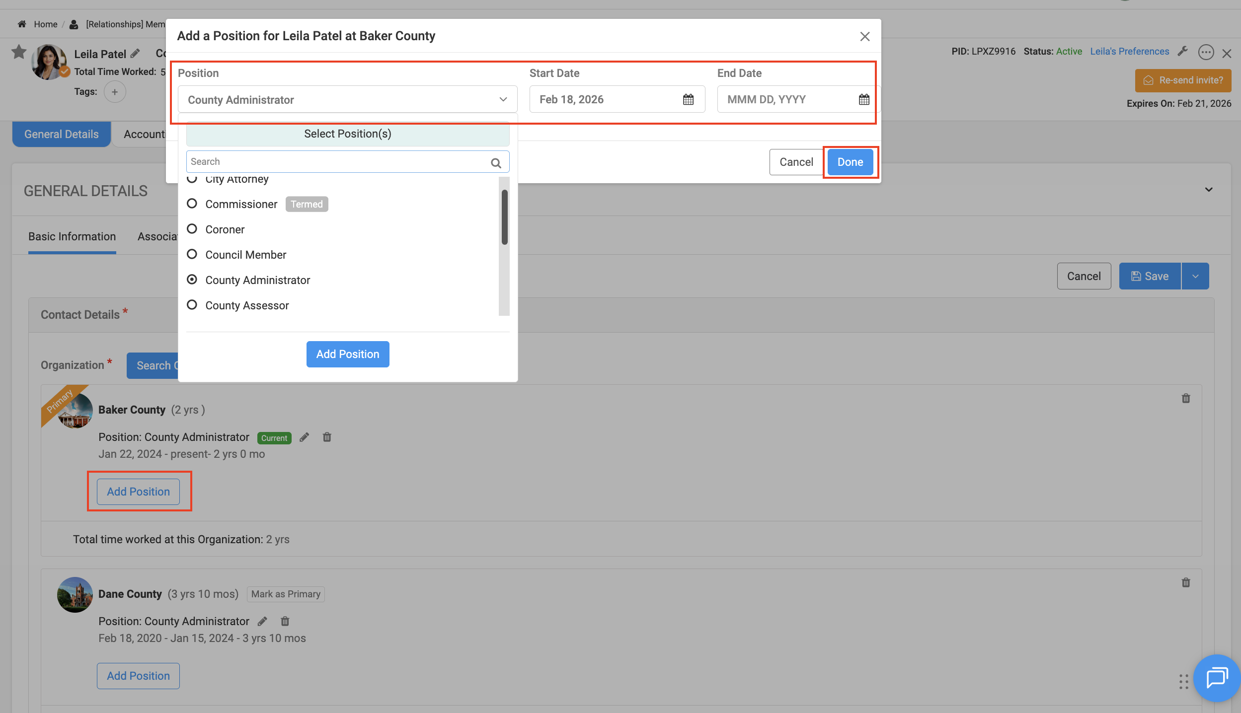 - Assign a Title (e.g., County Administrator)
