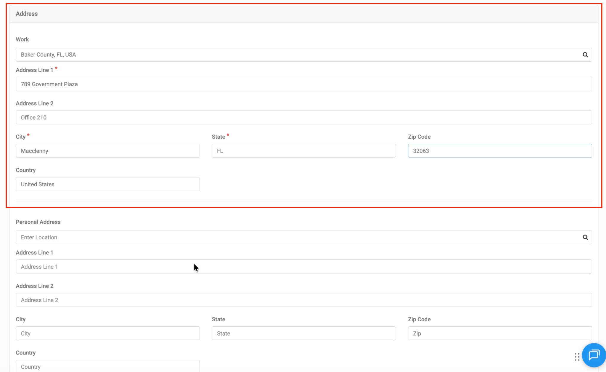 Add the person’s work address (this is typically their office address):