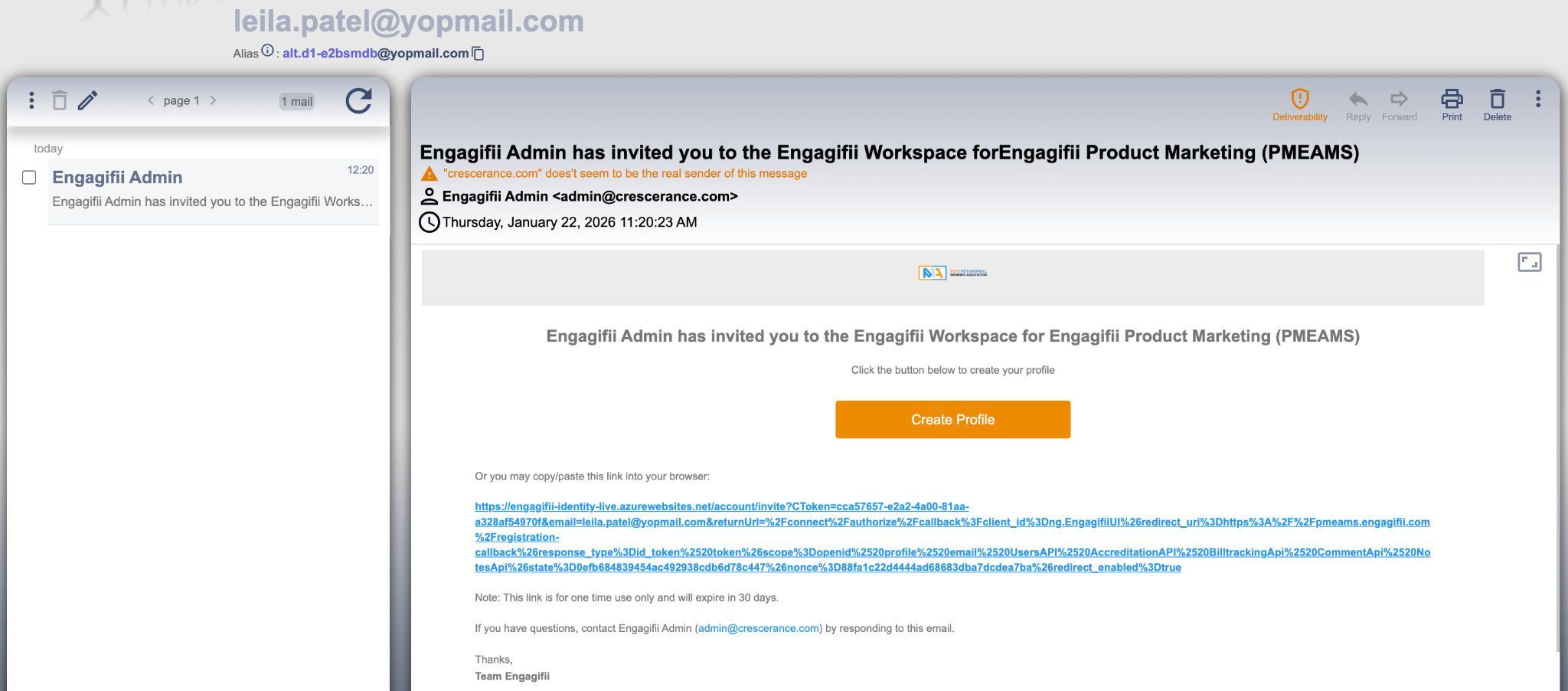 If you selected the Send Invitation option, the individual will receive an email inviting them to create their profile on the Engagifii platform. They can follow the link in the email to set up their password and gain access to the system.