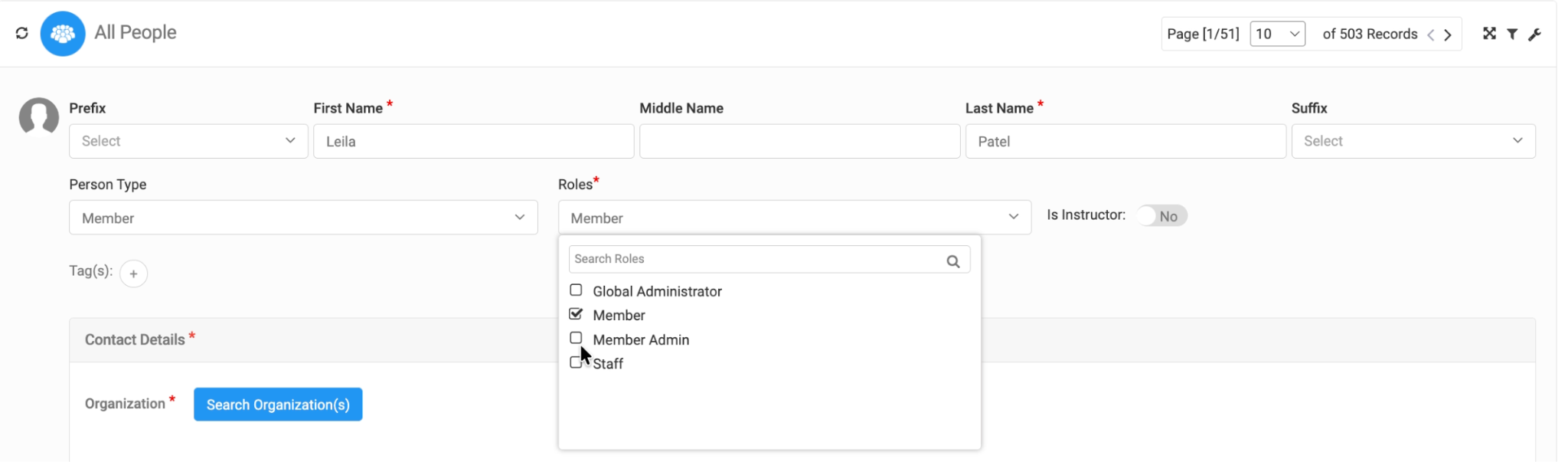 If the person will serve as an Instructor for classes or training, you can toggle the Instructor option on or off as needed.