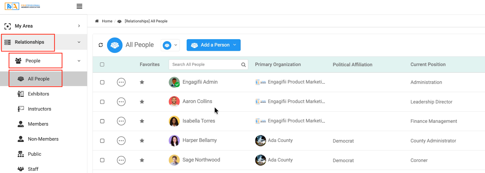 - Path: Relationships → People → All People