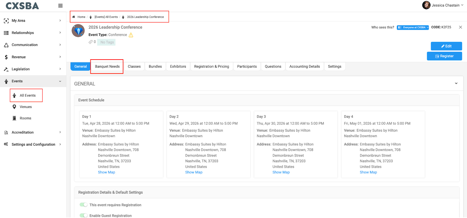 - Once saved, refresh your browser to see the updated label throughout all events.